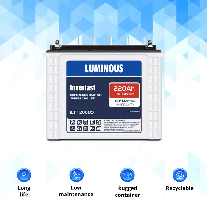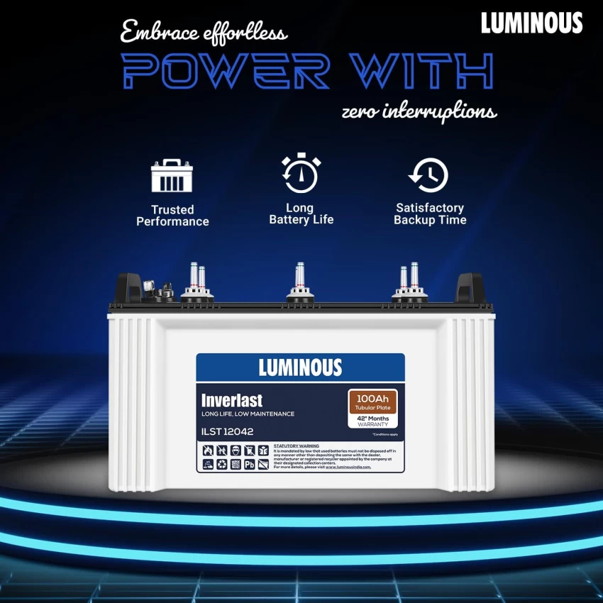 Luminous inverter batteries provide efficient, long-lasting power backup. With fast charging and durable performance, they're ideal for homes and offices, ensuring uninterrupted energy during power cuts. Suitable for various energy needs.